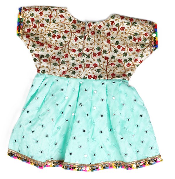 فستان قرنقشوه 6 اخضر فاتح و ابيض مطرز بالوان مختلفه