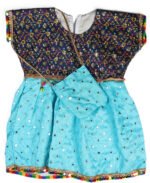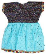 فستان قرنقشوه 6 ازرق فاتح و كحلي مطرز بالوان مختلفه