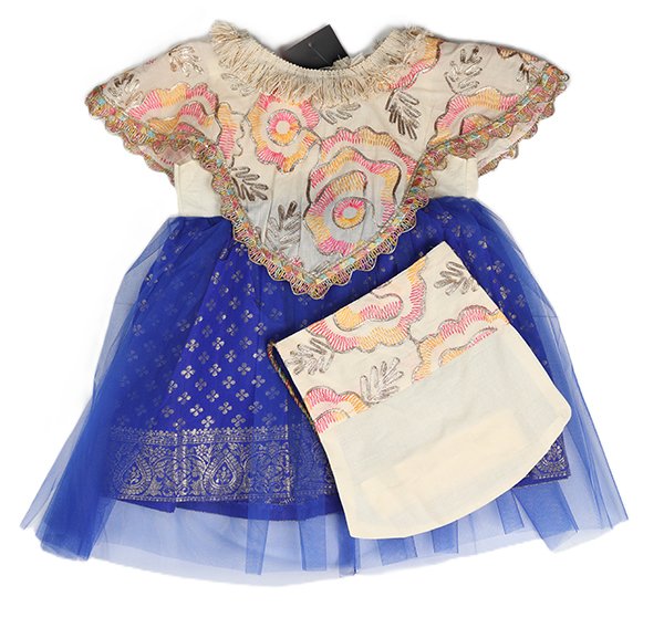 فستان قرنقشوه 7 ازرق و بيج مطرز