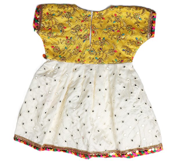 فستان قرنقشوه 6 بيج فاتح و اصفر مطرز بالوان مختلفه