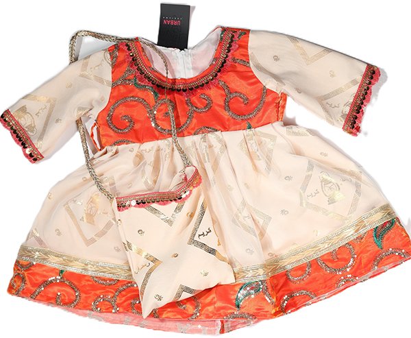 فستان قرنقشوه 2 بيج مطرز اورانج