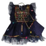 فستان قرنقشوه 6 ازرق فاتح و كحلي مطرز بالوان مختلفه