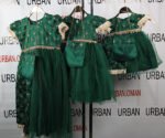 فستان قرنقشوه 6 اخضر فاتح و ابيض مطرز بالوان مختلفه