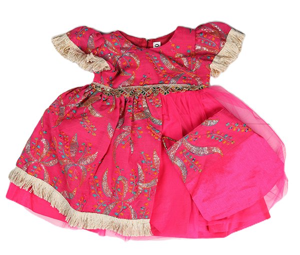 فستان قرنقشوه 7 فوشي و بيج مطرز