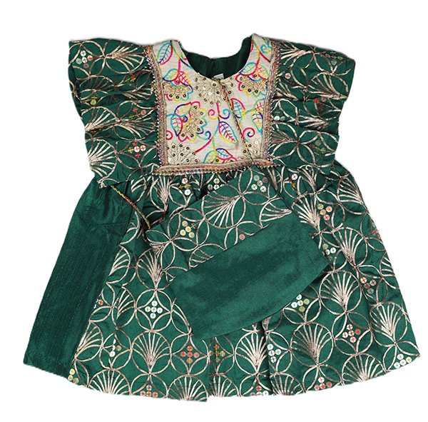 فستان قرنقشوه 1 بيج مطرز لون اخضر